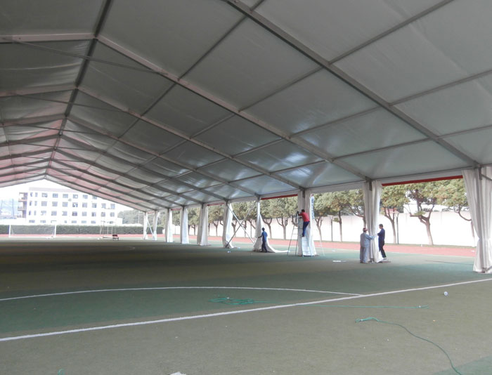 大型活動篷房采用高強度鋁合金框架,雙面PVC涂層篷布,蓬內無任-何支柱。蓬內使用容量寬廣,大型活動篷房有10米到50米多種跨度,單元長度有3米、5米兩種,并且有多種高度可供客戶選擇。